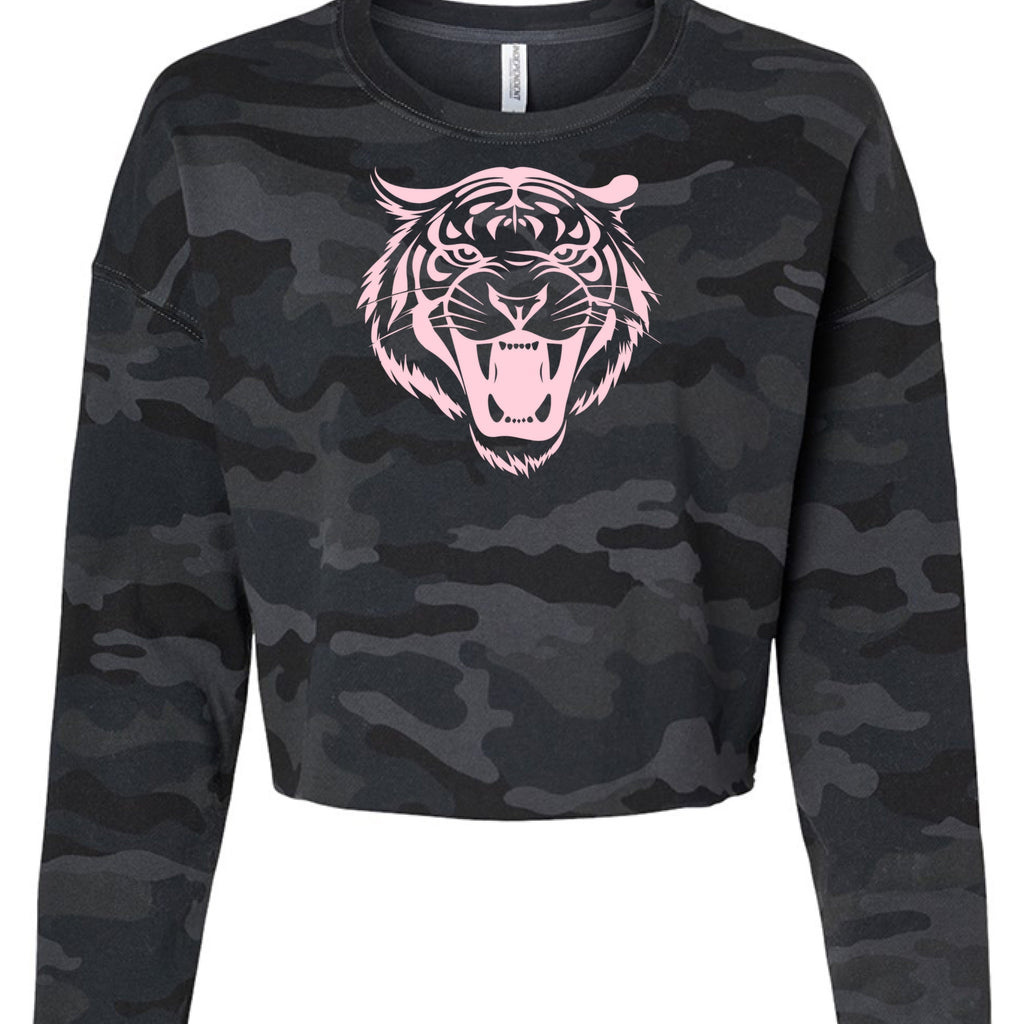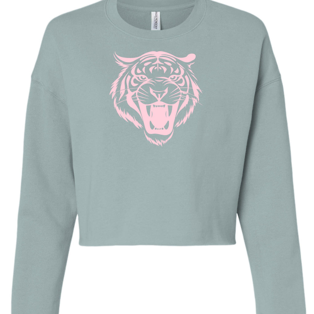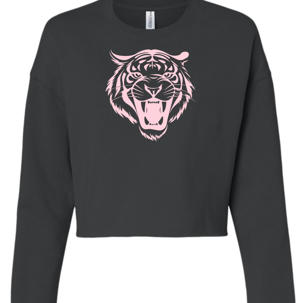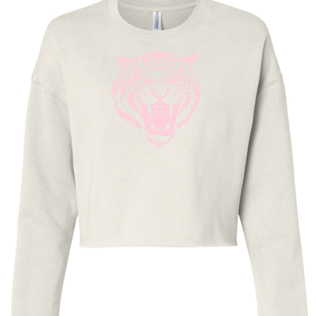 Pastel Pink Tiger Head Cropped Sweatshirt – Women’s Graphic Streetwear