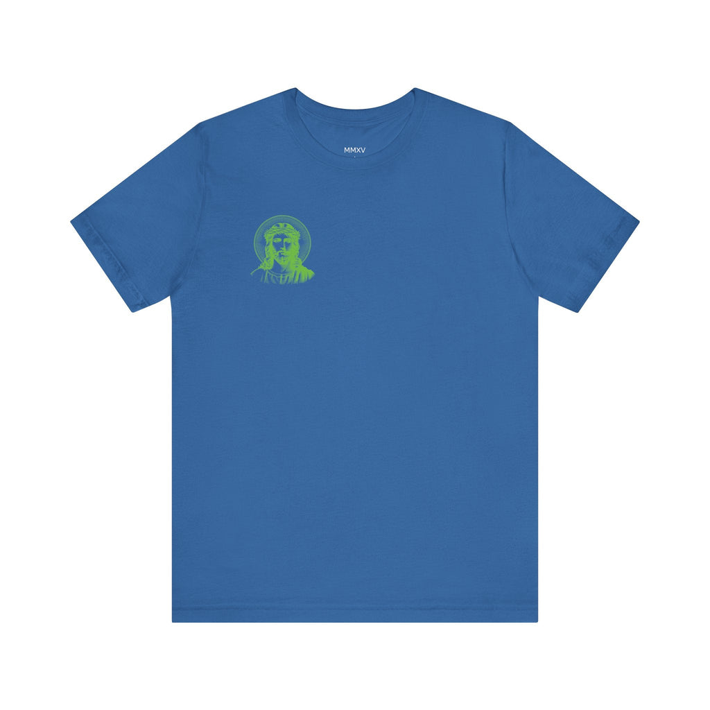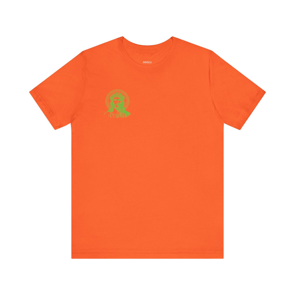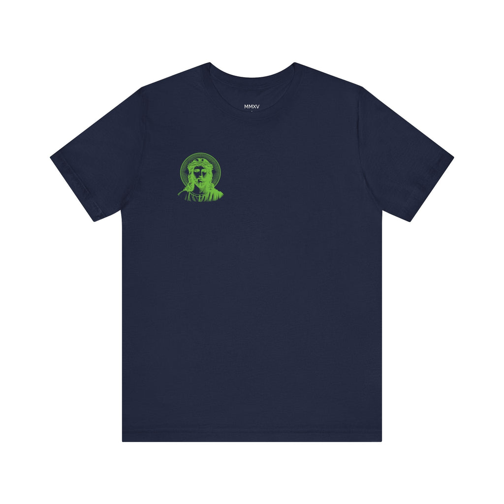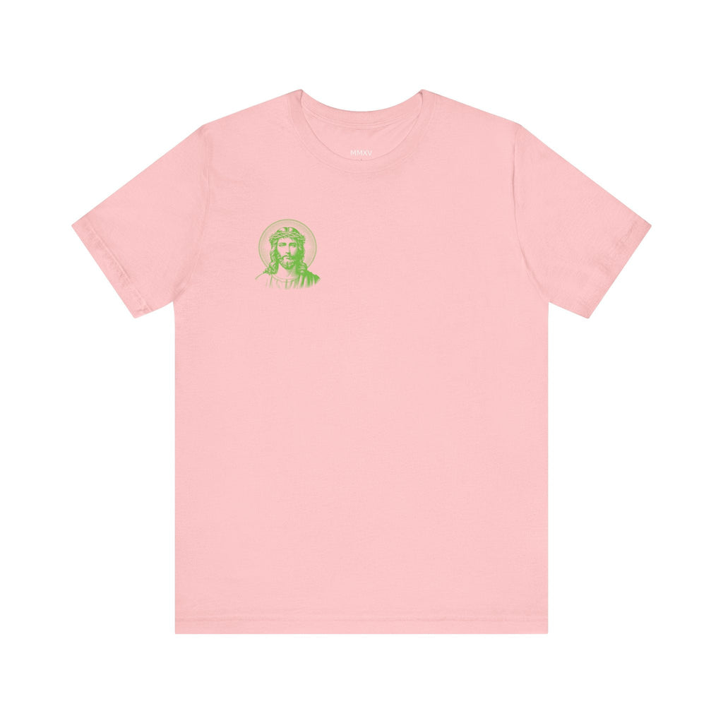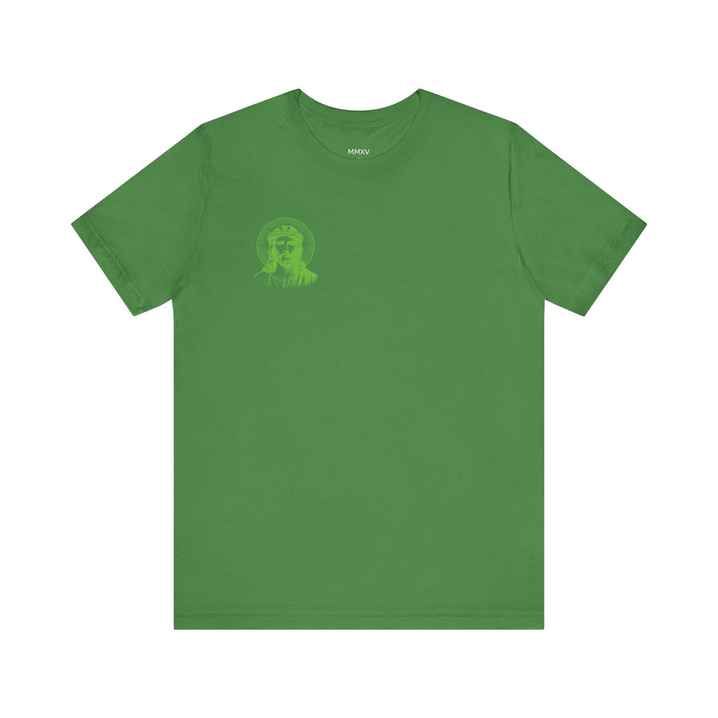 Green Jumbo Halo Jesus Back Print with Green Mini Jesus Front Left Print Graphic Tee - Iconic by Sandra Oles