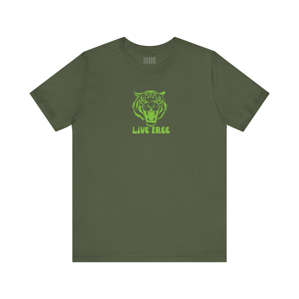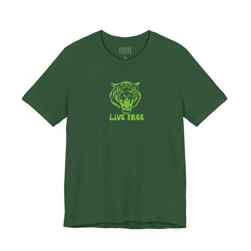Green Live Free Mid-Scale Retro Roaring Tiger Graphic Tee - Fugitive by Sandra Oles