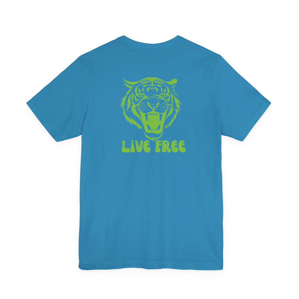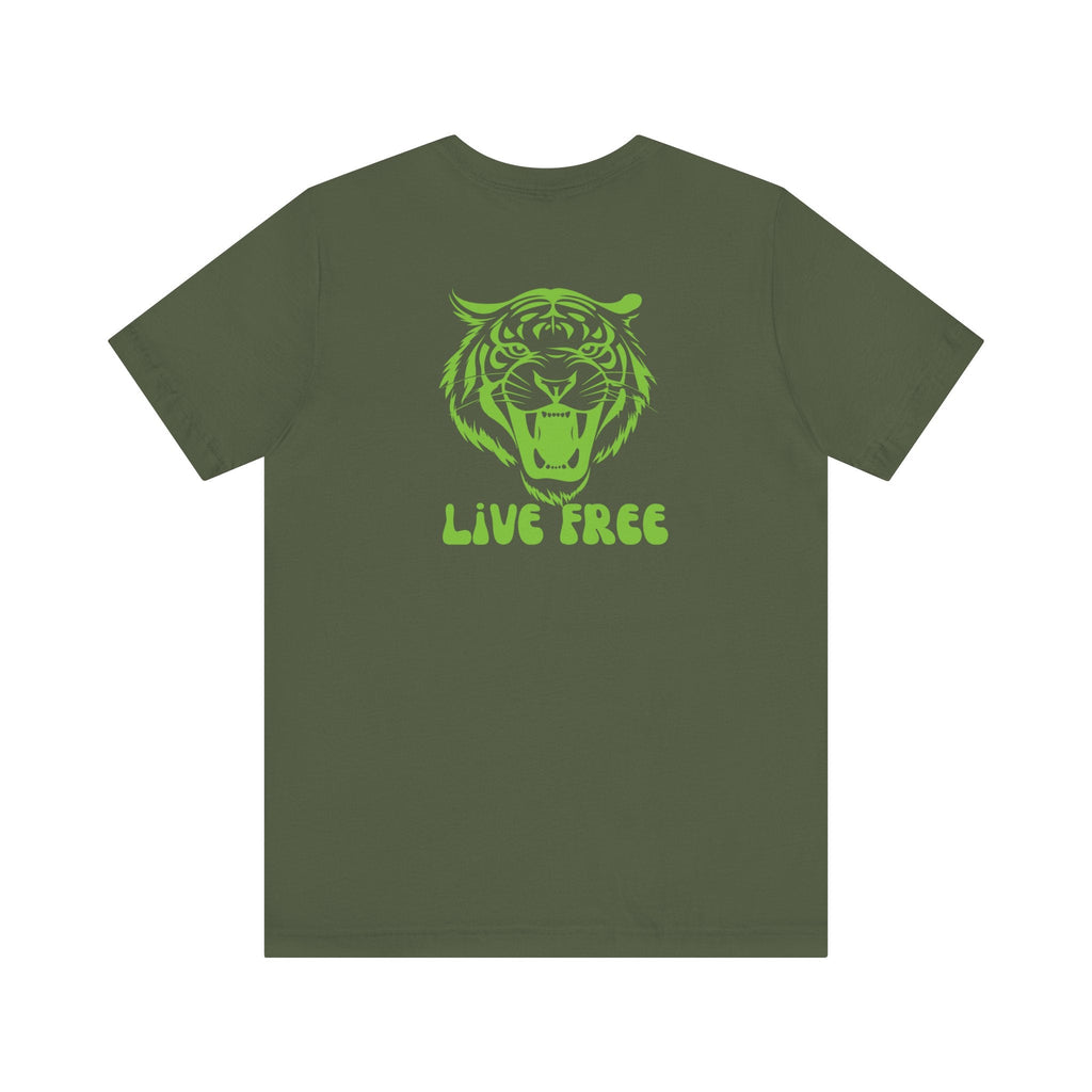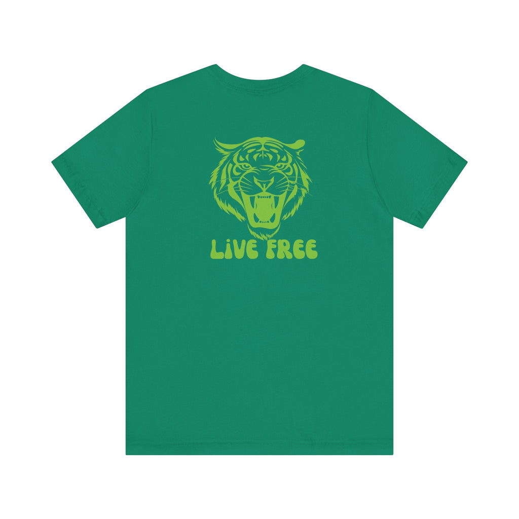 Green Retro Roaring Live Free Jumbo Tiger Back Print Graphic Tee - Fugitive by Sandra Oles